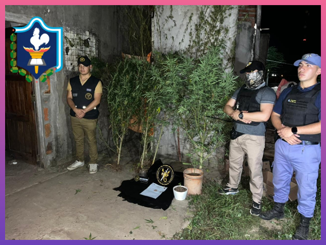 Durante el procedimiento, en el patio trasero de la vivienda donde se demoró al menor, los efectivos observaron varias plantas que, por sus características, podrían tratarse de marihuana. Tras la intervención de la División Drogas de Sáenz Peña, se confirmó mediante narcotest que se trataba de Cannabis Sativa.