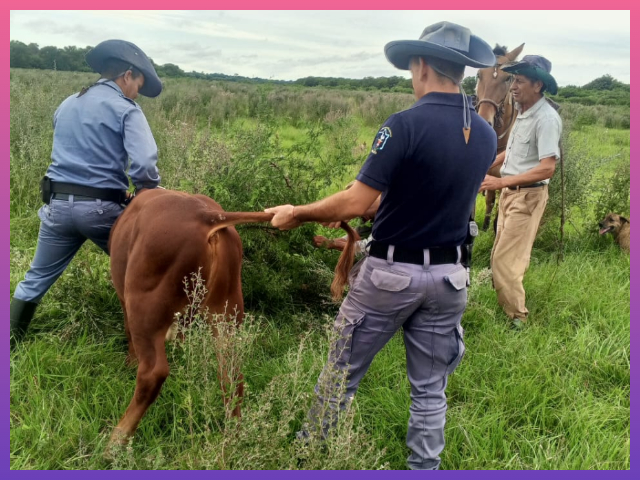 Todo comenzó poco después de las 9, cuando un hombre de 49 años, denunció que la sustracción de un animal vacuno desde su campo del Lote 19, en Colonia El Gualtieri. De inmediato los Rurales, siguieron rastros de huellas de un equino por unos tres kilómetros hasta hallar el animal atado a un árbol en una zona de chacra.