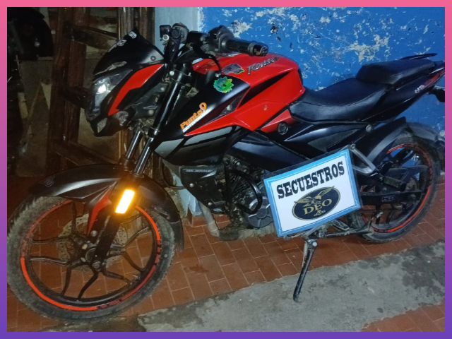 La motocicleta fue secuestrada y reconocida por el denunciante como de su propiedad, quedando resguardada por la Policía mientras continúan las actuaciones judiciales en la causa.
