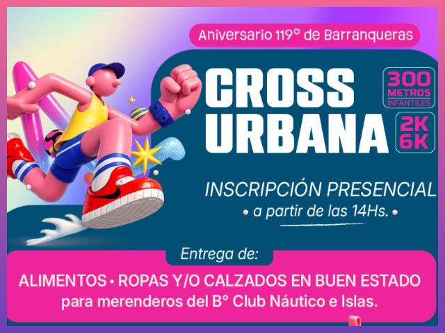 En el marco de los festejos por el 119° aniversario de Barranqueras, se realizará este domingo 12 de abril la Cross Urbana Solidaria, una propuesta que combina deporte, solidaridad y cuidado del medio ambiente, con epicentro en el Complejo Recreativo “Mi Bella Ciudad”.