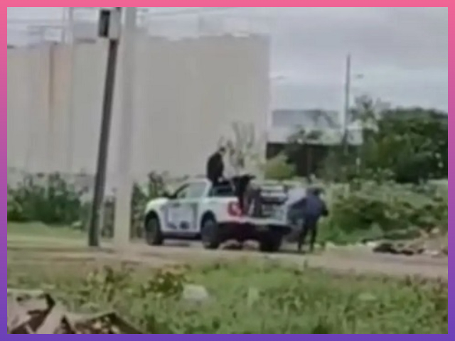 En la secuencia se observa a dos efectivos con el uniforme reglamentario y a otras dos personas vestidas de civil descargando bolsas de residuos y desechos directamente sobre el predio, convirtiendo el lugar en un basural clandestino a plena luz del día.