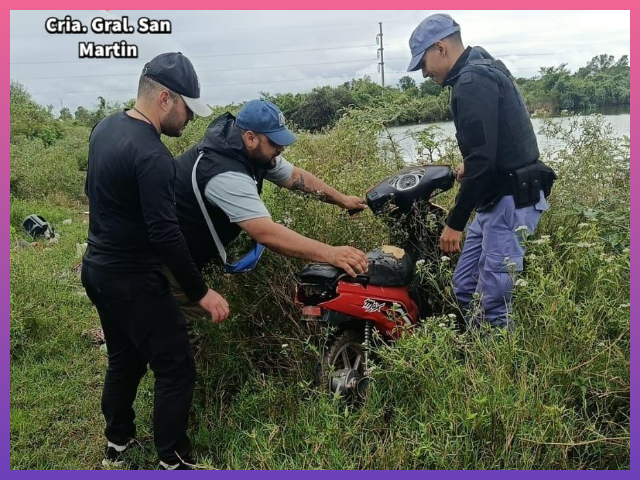 Posteriormente, los efectivos se dirigieron al lugar y llevaron a cabo un operativo de rastrillaje en el, logrando hallar la motocicleta denunciada como sustraída.
