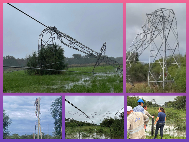 El fenómeno climático, registrado en el marco del fuerte temporal que impactó gran parte del territorio provincial, derribó 9 torres de una línea de 132 kV en un sector anegado, generando interrupciones en el servicio eléctrico en ambas localidades y áreas aledañas. “El fuerte viento derribó estructuras metálicas de una línea de alta tensión, dañando además la red derivada. Desde la madrugada, nuestros operarios trabajan para reparar el daño y restablecer el suministro energético en toda la zona”, señaló el vocal del Directorio de Secheep, Ariel Muñoz, quien supervisó las tareas en territorio.
