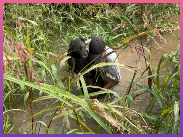 El procedimiento tuvo lugar alrededor de las 14:15 en el Camino Rural Mercosur. Al llegar al sitio, los uniformados constataron que un perro se encontraba atrapado entre las malezas, en una zona de difícil acceso cercana a las tuberías de un canal fluvial.