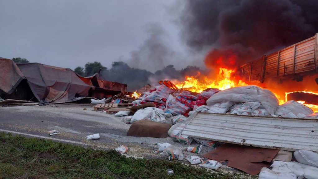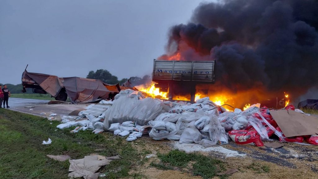 Según las primeras informaciones, dos camiones colisionaron por causas que aún se investigan. Como consecuencia del fuerte choque, uno de los conductores logró ser rescatado y fue trasladado al hospital local, mientras que el otro quedó atrapado dentro del vehículo y murió en el lugar.