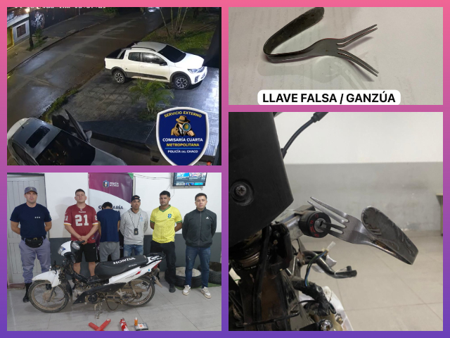 El operativo tuvo lugar en la intersección de calles Sierras de Córdoba y Río Tapenagá, en barrio Italia, cuando efectivos observaron a un sujeto intentando encender una motocicleta Honda Wave blanca utilizando una llave falsa tipo ganzúa, confeccionada con un tenedor metálico.