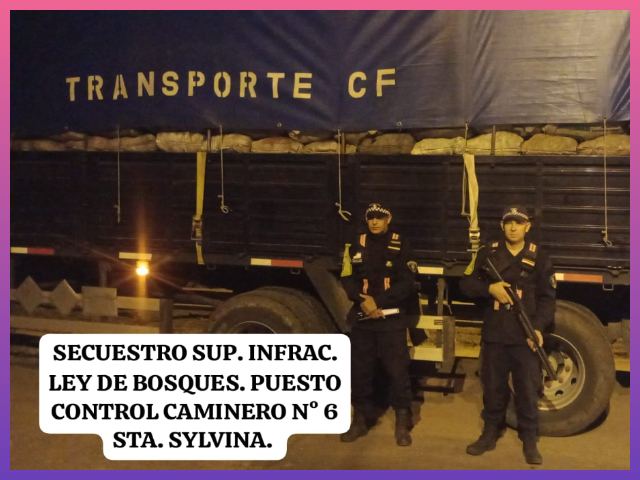 Ante esta situación, consultaron con autoridades de la Dirección de Bosques, desde donde se dispuso labrar acta de infracción del Régimen Forestal y proceder al secuestro del rodado junto con la totalidad de la carga.