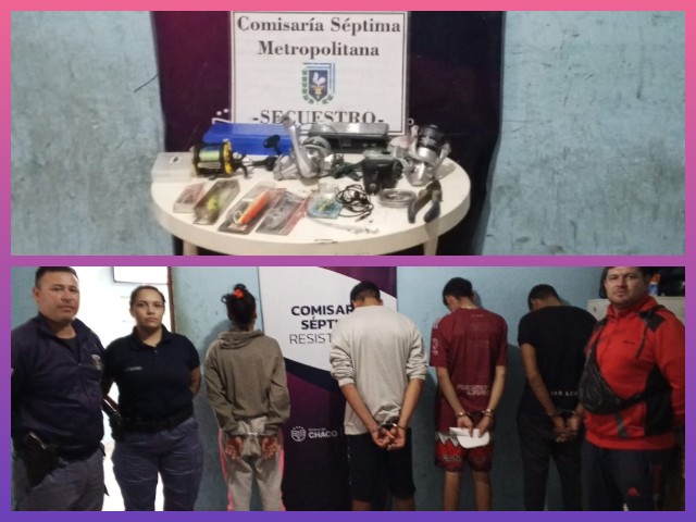 Al cabo de pocos minutos, por la avenida San Martín al 2300 aproximadamente, demoraron a cuatro personas que trasladaban lo sustraído, procedieron al secuestro y a la conducción de tres hombres y una mujer, todos mayores de edad.