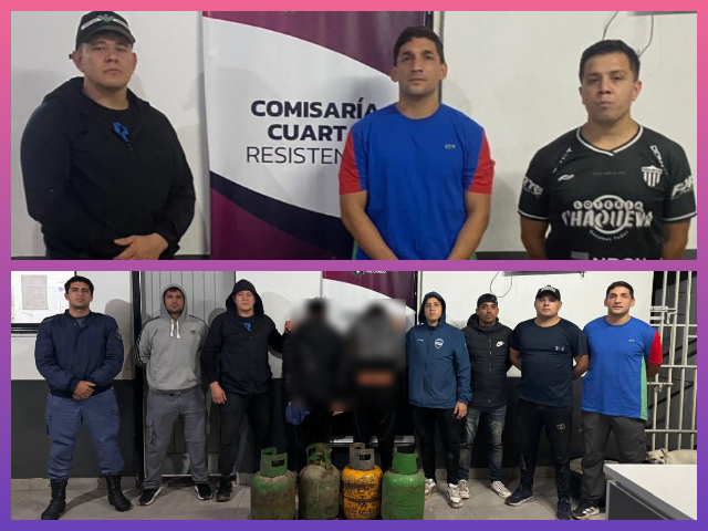 Tras un rastrillaje a pie, los agentes lograron encontrarlos ocultos dentro de un conducto de cemento. Los individuos fueron identificados y tienen 27 y 30 años, ninguno pudo justificar la procedencia de las garrafas, las cuales registraban pedido de secuestro vigente por una denuncia de hurto radicada el 20 de abril por un empleado de una empresa de la zona.