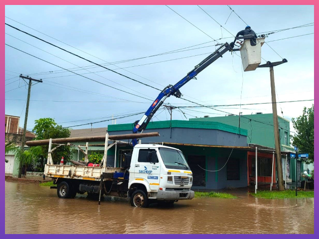 También en la zona rural de Colonia Popular y Laguna Blanca, un tornado derribó nueve torres metálicas de alta tensión en una línea de 132 KV, en un área de difícil acceso. La reparación demandará aproximadamente dos meses y una inversión superior a los 500 millones de pesos, en un trabajo conjunto con la Subsecretaría de Energía del Ministerio de Infraestructura.