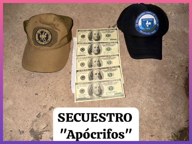 El hecho ocurrió en horas de la noche sobre calle Islas Sandwich del Sur, donde los efectivos demoraron a un hombre de 32 años que circulaba a pie. Durante el control e identificación, y con la presencia de testigo hábil, se realizó un palpado preventivo, hallando entre sus pertenencias un sobre que contenía cinco billetes de 100 dólares, presuntamente apócrifos.