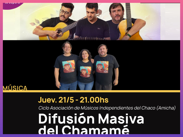Mientras que “Difusión Masiva del Chamamé” es un proyecto que se enmarca en la transmisión de nuestra música regional, recorriendo el Chaco y dando a conocer de primera mano el cancionero del litoral. La banda está conformada por Tito Luque, Julio Romero y Leonardo Rodríguez, quienes contarán con invitados.