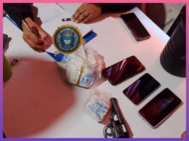 Durante el procedimiento, los policías incautaron una suma estimada en 23.900.000 pesos, un arma de fuego calibre 22 y tres celulares. Los elementos secuestrados estarían vinculados a la causa por narcomenudeo que se investiga desde marzo.