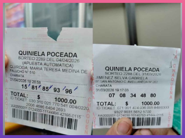11-Abr-26 La Quiniela Poceada sigue entregando premios millonarios y esta vez la suerte cayó por duplicado en Charata, ya que dos vecinas de esta importante ciudad del sudoeste resultaron ganadoras durante los sorteos del pasado 31 de marzo y 4 de abril.