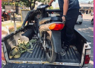 Más tarde, un hombre de 66 años se presentó en la comisaría e informó que, aproximadamente a la 1:30, al salir de un templo ubicado por la calle 13 al 2000, fue interceptado por dos sujetos armados con un cuchillo. Los delincuentes lo amenazaron y le robaron su motocicleta, la cual fue recuperada y secuestrada en poder de los jóvenes detenidos.
