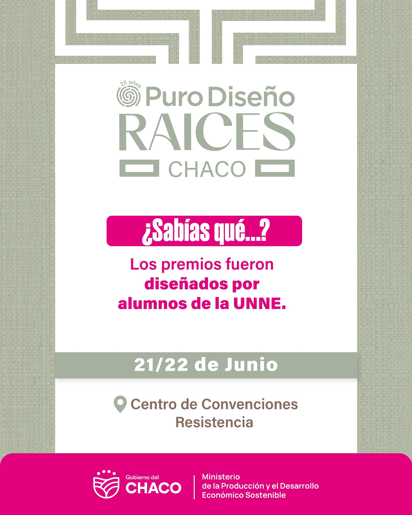 En la organización de la Feria Puro Diseño Raíces 2025 Edición Chaco, interviene el Gobierno de la provincia a través de la Subsecretaría de Emprendedurismo del Ministerio de la Producción y el Desarrollo Económico Sostenible.