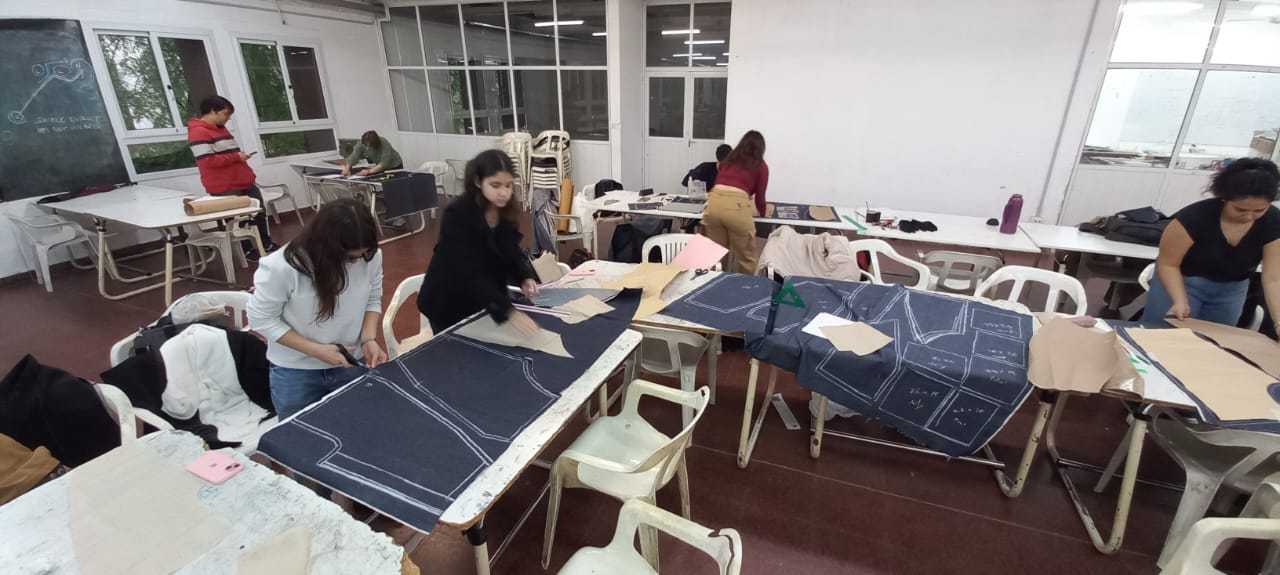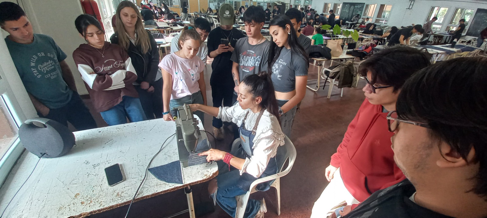 Y en cuanto a los insumos, surgió otra charla con una decisión clara: “apostar a lo local”. Así, y gracias a la profesora, Diseñadora de Indumentaria, Verónica Plutt quién a partir de su emprendimiento tiene conocimiento y contactos en el rubro; consiguieron restos de telas de jean chaqueña “y pusieron entre todos para comprarlas”. Con la solidaridad siempre reinante. Aquellos que no tenían el dinero para comprar, también tuvieron los retazos de denim sobre la mesa, el día que debían trabajarlo.