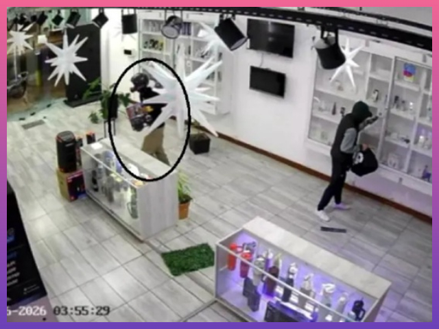 Después de mirar a su alrededor y corroborar que no había testigos violentaron la puerta de blindex, a la cual terminaron destruyendo.