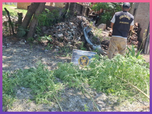 Durante la inspección en el sector del patio, los agentes encontraron cuatro plantas de marihuana. Las mismas fueron sometidas a prueba de campo, arrojando resultado positivo para Cannabis Sativa.