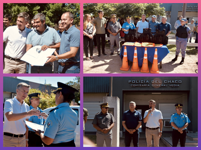 Durante la actividad, el mandatario destacó el alcance de las acciones que el Gobierno Provincial viene desarrollando en todo el territorio chaqueño. “En el corazón del departamento Bermejo, aquí en Vedia, en la cuna del escudo de nuestra provincia, estamos entregando móviles para la seguridad pública, tanto para las comisarías como para la División de Violencia de Género, que era la última que faltaba equipar en el departamento. Se trata de un vehículo cero kilómetro que nos permite seguir reforzando el plan de seguridad para combatir el narcotráfico, el crimen organizado y el delito, tanto en el campo como en la ciudad”, expresó Zdero.