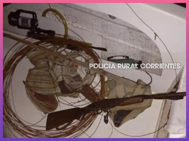 En poder de estas últimas personas encontraron trasmallos, una escopeta, machetes, cuchillos, un carpincho faenado, peces y tramperos.