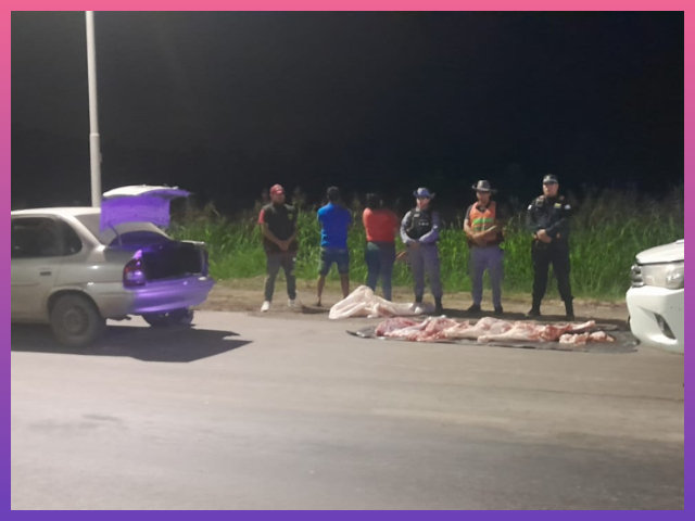El procedimiento tuvo lugar en la intersección de la Ruta Nacional N° 11 y la Ruta Provincial N° 13, donde los uniformados detuvieron la marcha de un automóvil Chevrolet Corsa, conducido por un hombre de 39 años, quien iba acompañado por una mujer de 27 años. Al solicitar la apertura del baúl, los agentes constataron la presencia de restos de un animal bovino, categoría ternero, distribuidos en bolsas de arpillera.