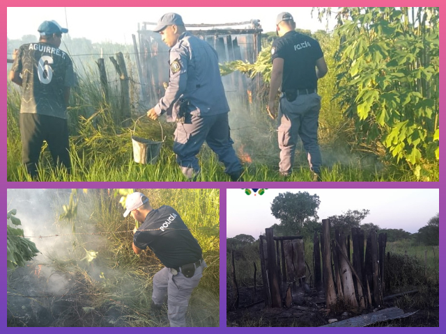 Personal de la comisaría local junto a empleados del municipio, lograron sofocar el proceso ígneo que solo causó daños materiales y la destrucción total del inmueble.