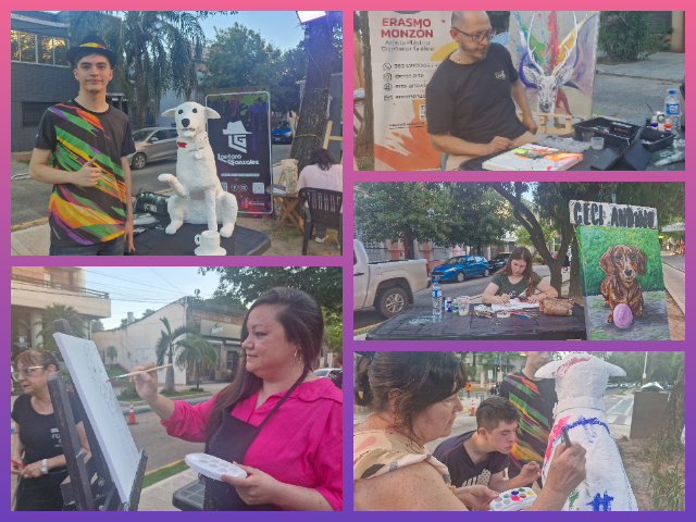 Entre los participantes estuvo el joven escultor y artista plástico Lautaro González, de 18 años, quien desarrolló una escultura del Perro Fernando con una modalidad participativa. La pieza fue intervenida por vecinos que se acercaron a sumar color y detalles. El artista explicó que trabajó con estructuras de hierro, relleno de papel y revestimientos especiales para dar forma y resistencia a sus obras y abrió la posibilidad de que el público pueda dejar su huella en la creación. También agradeció la invitación y el acompañamiento recibido para concretar el proyecto.