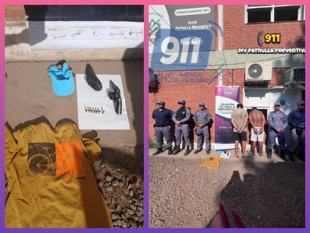 Durante el procedimiento, los uniformados lograron el secuestro de un revólver calibre 32 largo, con seis vainas servidas y un cartucho sin percutar, además de una funda de arma y otros elementos. Ambos sujetos se mostraron agresivos con el personal policial, por lo que fueron demorados y trasladados para su identificación.