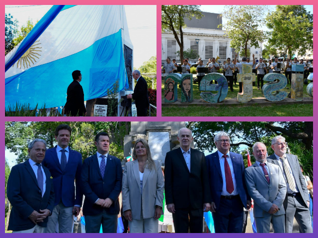 Junto al jefe comunal estuvo el alcalde Udine, Alberto Felice de Toni, junto a autoridades provinciales, legislativas, judiciales y municipales, representantes de la Unión de Colectividades del Chaco y excombatientes de Malvinas desfilaron en la avenida 9 de Julio, como parte de la ceremonia oficial.