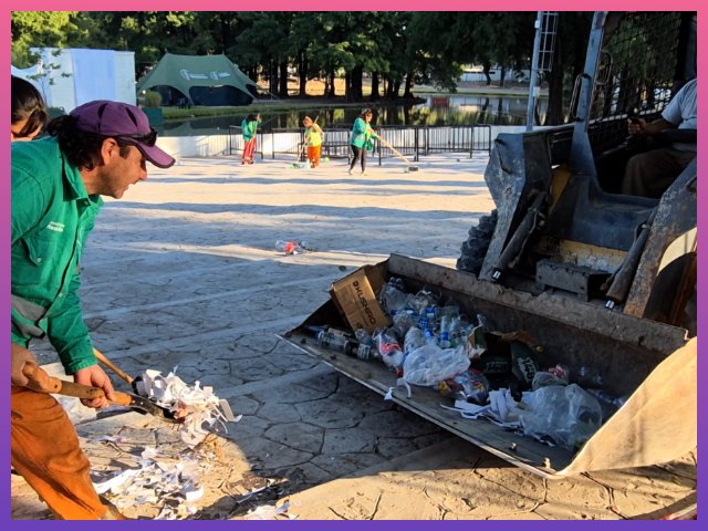 La intervención abarcó toda la zona, en especial el Anfiteatro Griego, las canchas de básquet, las tribunas, la pista de atletismo, el Paseo Costanero y el Domo del Centenario, además del barrido de la avenida de Los Inmigrantes, Lavalle y Avalos.