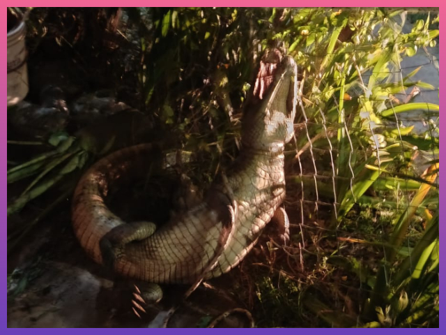 Cerca de las 20:30, el personal de la División Bombero recibió el llamado de una ciudadana de la Quinta 92, quien informó la presencia de un reptil en el patio delantero de su domicilio. Al llegar, los efectivos se encontraron con un Yacaré de aproximadamente 1,30 metros de largo. Rápidamente acudieron a la zona.