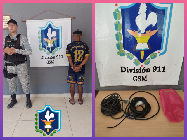 Al ser demorado, se constató que llevaba dos rollos de cable con un portalámparas y un foco, los cuales habrían sido sustraídos minutos antes de las estructuras de sonido del corsódromo.