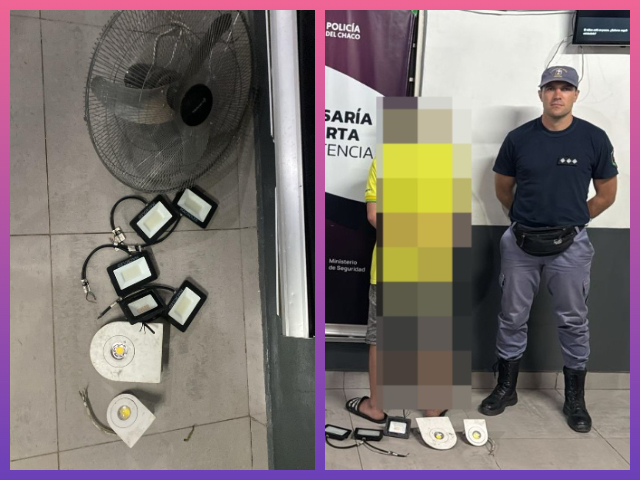 Durante recorridas preventivas en el barrio Carpincho Macho, los efectivos demoraron a un hombre de 31 años, quien tenía en su poder un ventilador de pared marca Crivel y siete reflectores de distintas marcas, no pudiendo acreditar su procedencia.