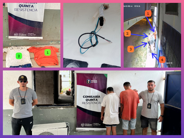 Tras la denuncia radicada por la propietaria de 44 años y el análisis de las filmaciones, los agentes iniciaron tareas investigativas que dieron frutos cerca de las 11:00 de la mañana. En la zona de la calle Gato al 2.100, la policía interceptó a los sospechosos, uno de 24 y el otro de 37, mientras transportaban el motor del aire con claras intenciones de comercializarlo.