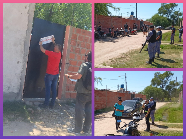 Ante la irregularidad de la situación, se solicitó la presencia de inspectores municipales de las áreas de Ruidos Molestos, Inspección General y Tránsito. Bajo el resguardo de la fuerza policial, los agentes municipales procedieron a la clausura preventiva del predio.