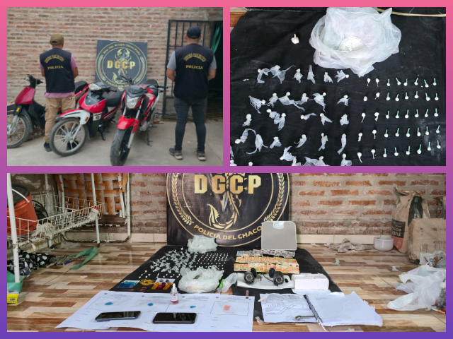 En una de las habitaciones hallaron 154 envoltorios con cocaína, con el peso total de 62.7 gramos, dos envoltorios con marihuana de 1.3 gramos, y todos los elementos vinculados a la venta de estupefacientes: tijeras, recortes de nylon, la suma de $55.000 pesos en efectivo, papeles con anotaciones, un posnet de mercado pago, dos celulares y dos cámaras de seguridad, todo resultó de interés para la causa investigada.