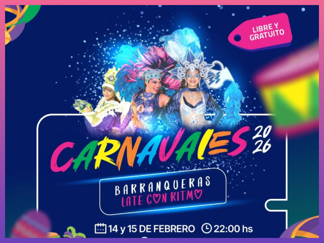 Barranqueras se alista para celebrar los Carnavales 2026 con una propuesta que reunirá comparsas, música y espectáculos en distintos puntos de la ciudad, bajo el lema “Barranqueras late con ritmo”.