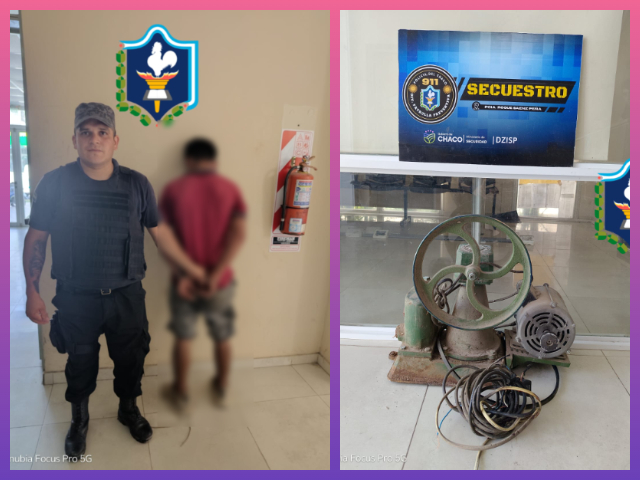 Al arribar al lugar, los efectivos identificaron a un joven de 26 años, que llevaba una bomba de agua con su respectivo motor y cable de alimentación.