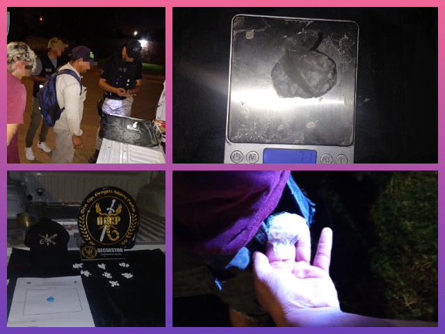 Tras un patrullaje por la zona, los efectivos individualizaron a un joven de 22 años, oriundo de la provincia de Santa Fe, quien se encontraba en la vereda de un domicilio. Al momento de la intervención, se solicitó la colaboración de la División Operaciones Drogas Interior Sáenz Peña para realizar las pruebas de campo correspondientes.