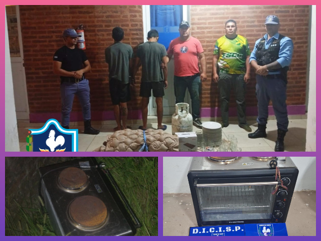 En el lugar, los agentes interceptaron a dos jóvenes de 18 y 20 años que intentaban ocultarse. En su poder se encontró el resto del botín: un tubo de gas de 10 kg, dos colchones inflables antiescaras y una gran cantidad de vajilla (platos de porcelana, vasos, hielera y cubiertos).
