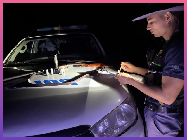 Como resultado, los agentes incautaron una escopeta calibre 12 sin marca ni numeración visible, cuatro cartuchos del mismo calibre y una linterna, elementos que se encontraban en poder de un hombre de 30 años domiciliado en Pampa Chica.