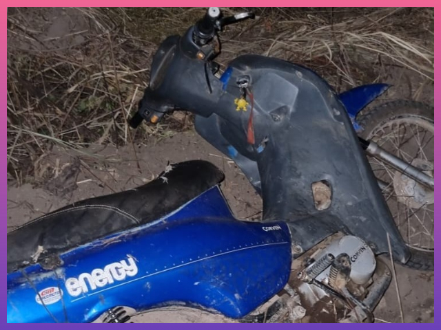 Los efectivos procedieron al formal secuestro de una motocicleta 110cc, con motor y chasis no visibles.