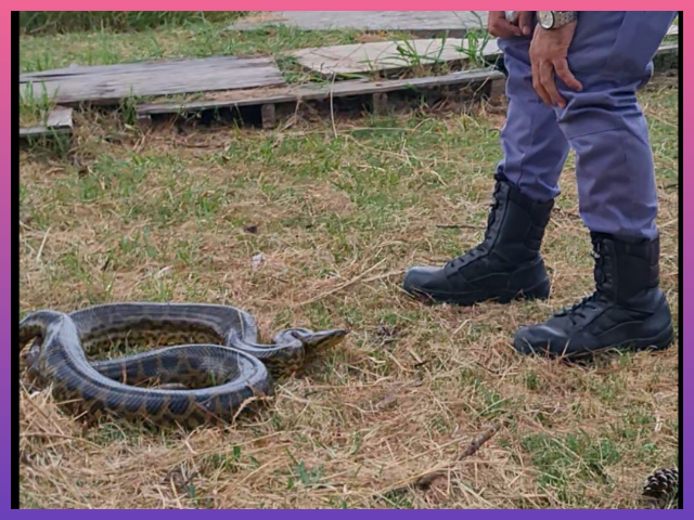 Tras verificar la situación, se constató que se trataba de una boa curiyú (Eunectes notaeus), hembra adulta, de aproximadamente 2,30 metros de longitud.