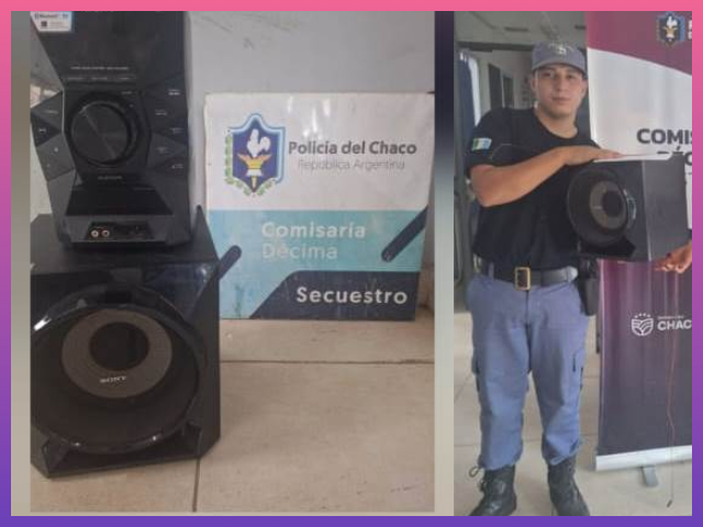 Rápidamente una móvil de la División Patrulla Preventiva, llego al lugar logrando demorar al sujeto de 20 años. Este intentaba llevarse con un equipo musical marca Sony y su parlante.