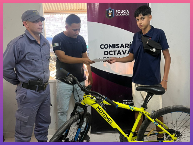 Por disposición de la magistratura interviniente, la bicicleta fue restituida a su propietario tras acreditar la propiedad, mientras que el adolescente fue entregado a su progenitora con intervención de la Línea 102.