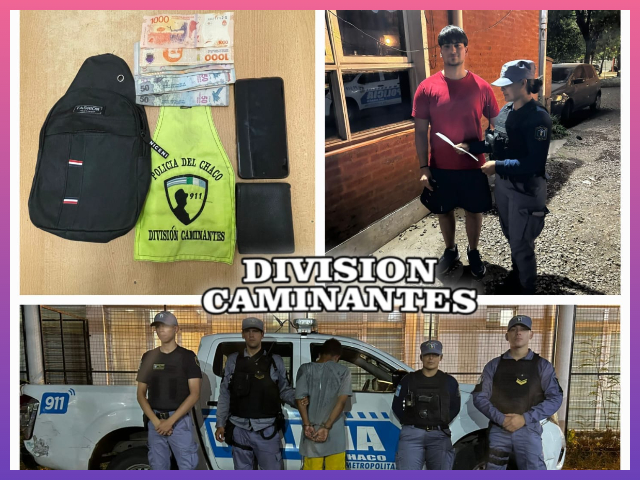Con las características aportadas, personal de la División Caminantes desplegó un rastrillaje que permitió ubicar a uno de los sospechosos en la intersección de avenida Chaco y pasaje Franklin, mientras que el segundo implicado logró escapar.