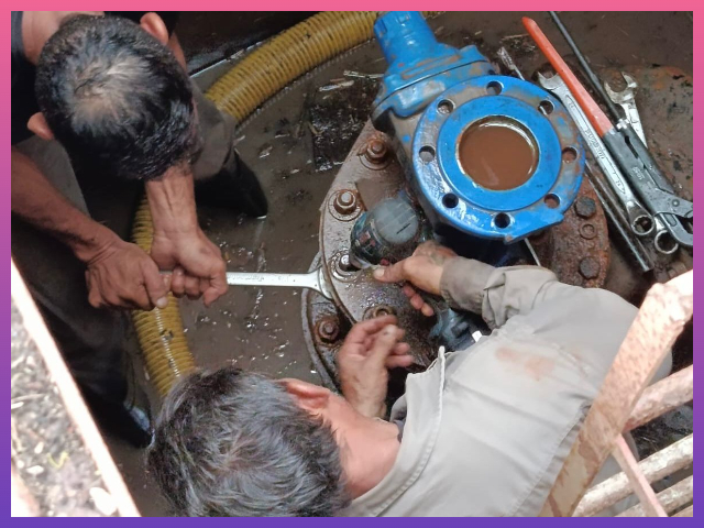 La intervención consistió en tareas de ajuste y reparación de esta válvula estratégica, que permite regular el flujo de agua hacia dicha localidad. Este trabajo fortalece la operatividad del sistema, mejora el control del caudal y contribuye a una distribución más eficiente del suministro.