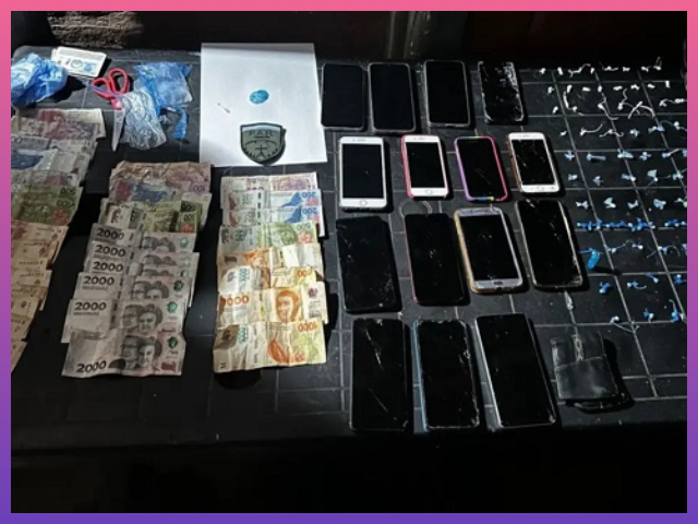 Además del estupefaciente, los efectivos incautaron una suma de dinero en efectivo, 15 teléfonos celulares de distintas marcas y modelos, tijeras y recortes, elementos que serían de interés para la causa.