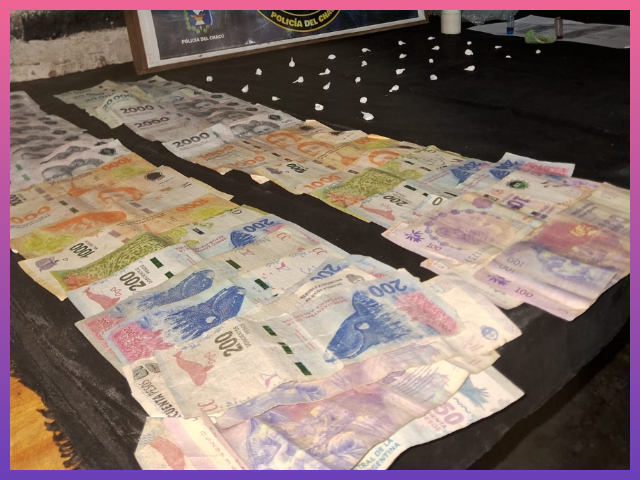 Tras la requisa del inmueble hallaron 29 envoltorios de polietileno con cocaína, con un peso total de 4,6 gramos, un envoltorio con marihuana, con un peso de 0,6 gramos, dos tijeras de plástico, bolsas y recortes de polietileno y la suma de $168.350 en efectivo.